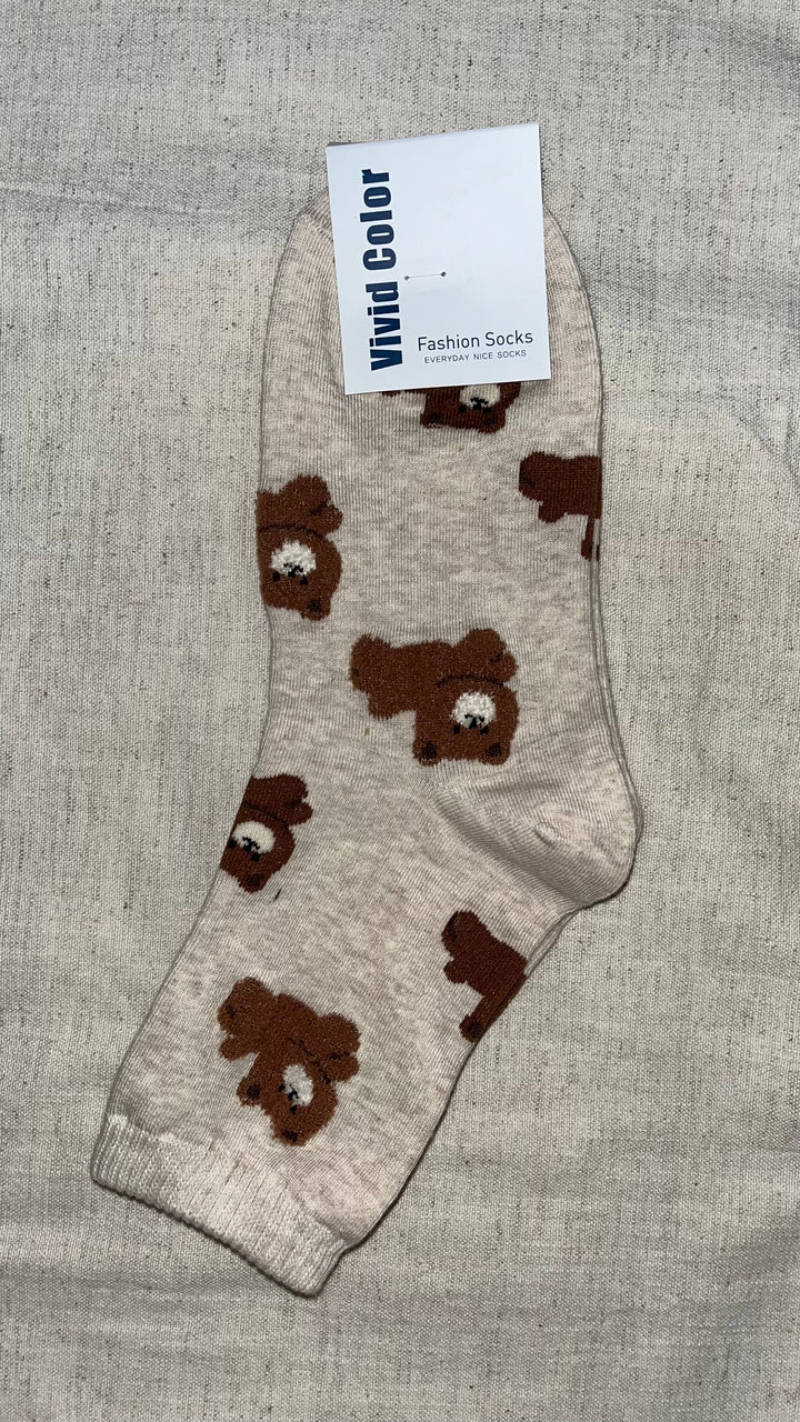 These soft and comfortable socks feature an adorable teddy bear pattern, perfect for adding a playful yet cozy touch to your wardrobe. Designed for both warmth and style, they are ideal for daily wear.