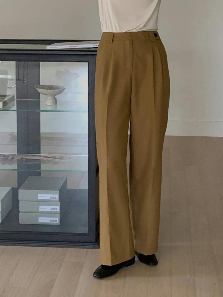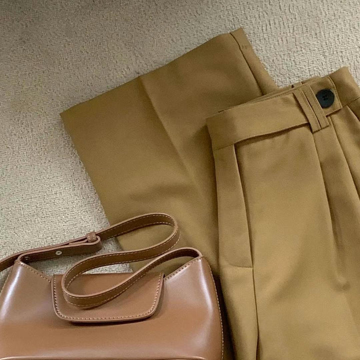 These high-waisted straight-leg trousers are crafted for a sleek, tailored fit, perfect for a polished and professional look. The warm brown tone pairs effortlessly with various tops, making it a versatile addition to your wardrobe