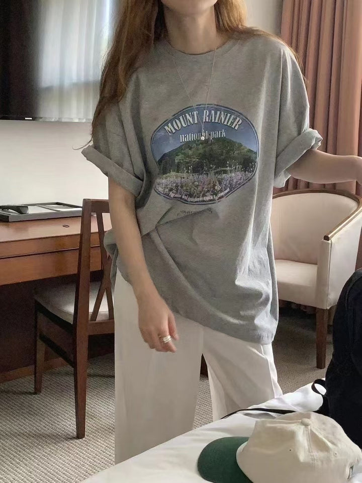 There’s something special about a shirt that feels like a memory. Our Relaxed Fit Scenic Graphic Tee brings the calm of Mount Rainier’s blooming fields and open skies right to your everyday. With a soft, lived-in feel and a gently oversized fit, it’s made for coffee runs, slow weekends, or daydreaming by the window. Whether you tuck it into jeans or wear it over a breezy skirt, it’s your little slice of peaceful nature—no hiking boots required.