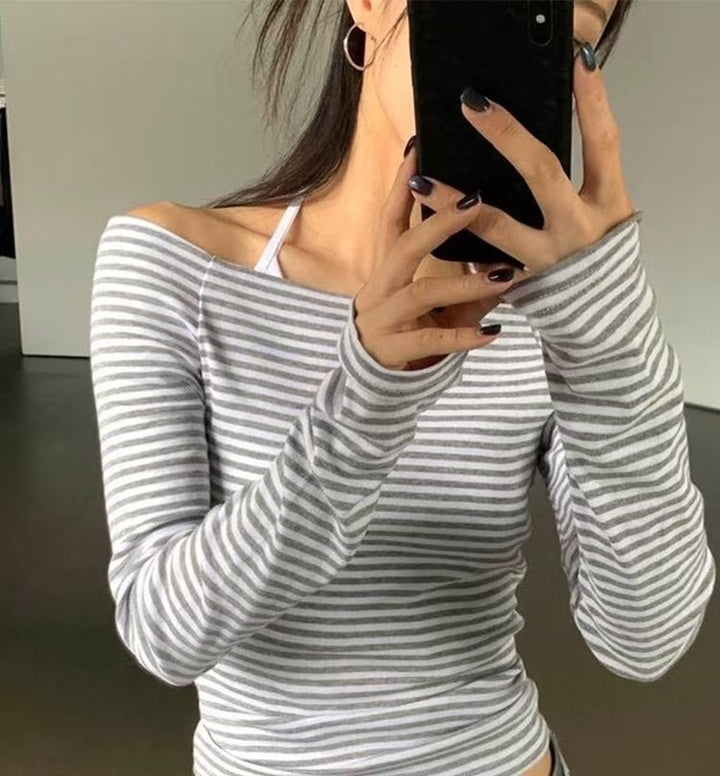 Slim Fit Ribbed Off-Shoulder Tee