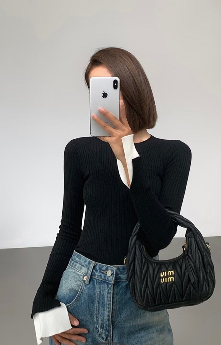 A piece that instantly elevates your everyday. The Slim Ribbed Contrast-Cuff Sweater hugs just right—snug but never tight, like your favorite café corner on a rainy day. With its soft ribbed texture and eye-catching white cuffs, it’s a little unexpected, a little elegant. Dress it up for dinner or down with jeans—it’s your new quiet statement piece that speaks volumes.